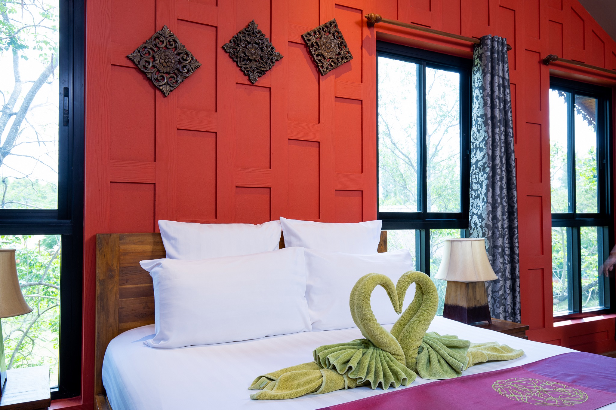Thai Deluxe is located on 2nd floor of Thai house , 30 m2 with spacious relaxing area in front of the room, seeing a nice view of the resort and pine trees. Interior is fully furnished with Thai style room set up.