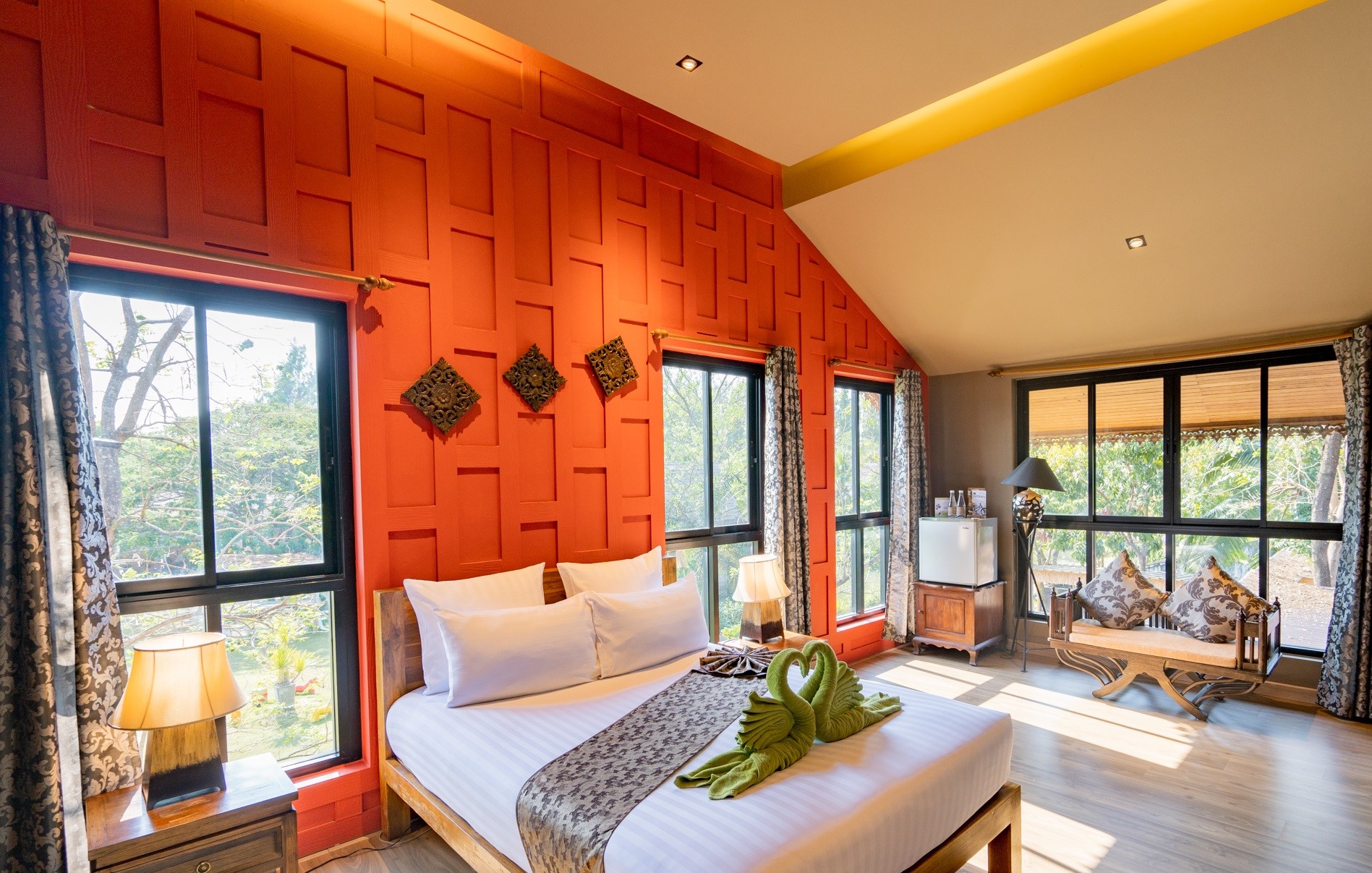 Thai Deluxe is located on 2nd floor of Thai house , 30 m2 with spacious area in front of the room, seeing a nice view of the resort and pine trees. Interior is fully furnished with Thai style room set up.